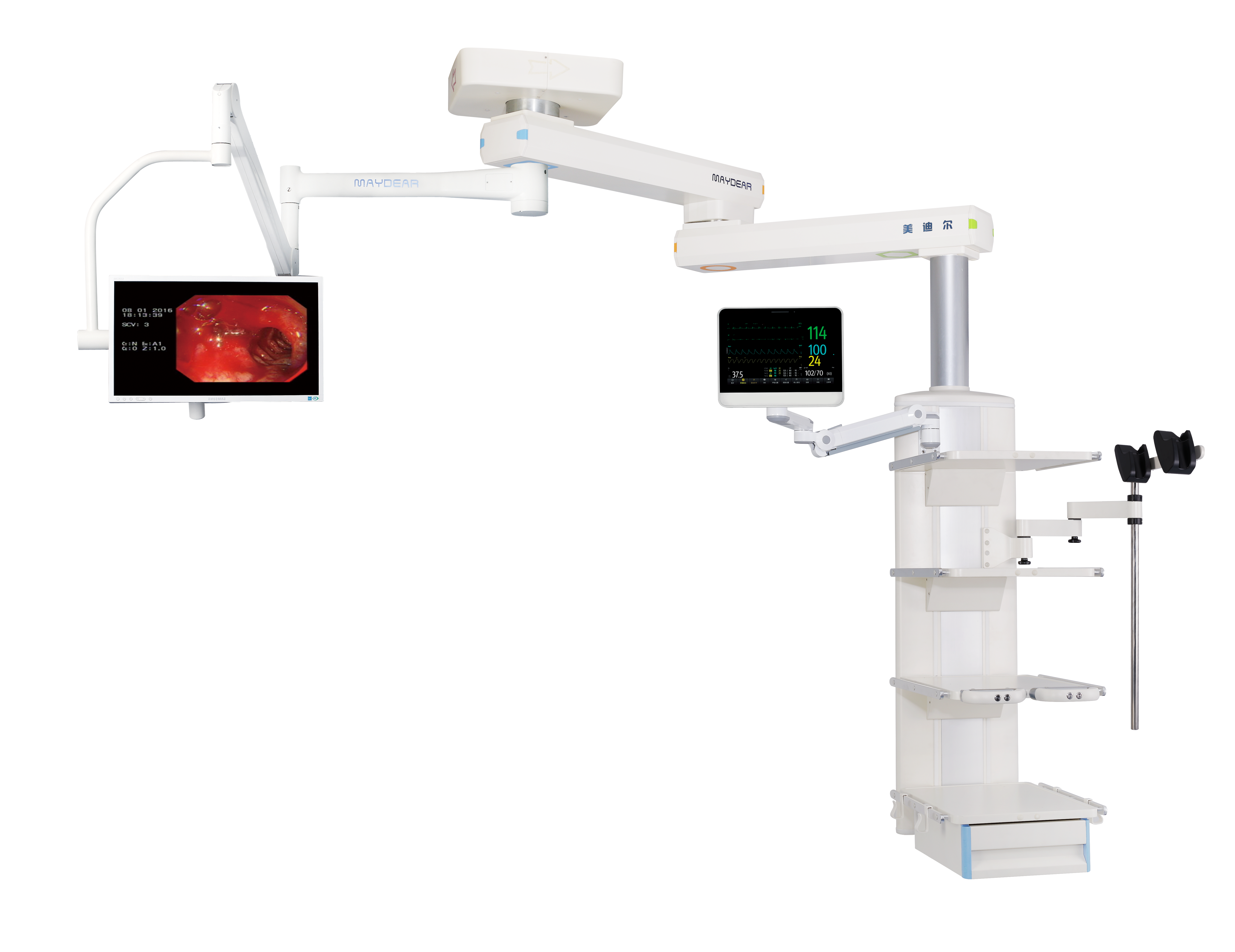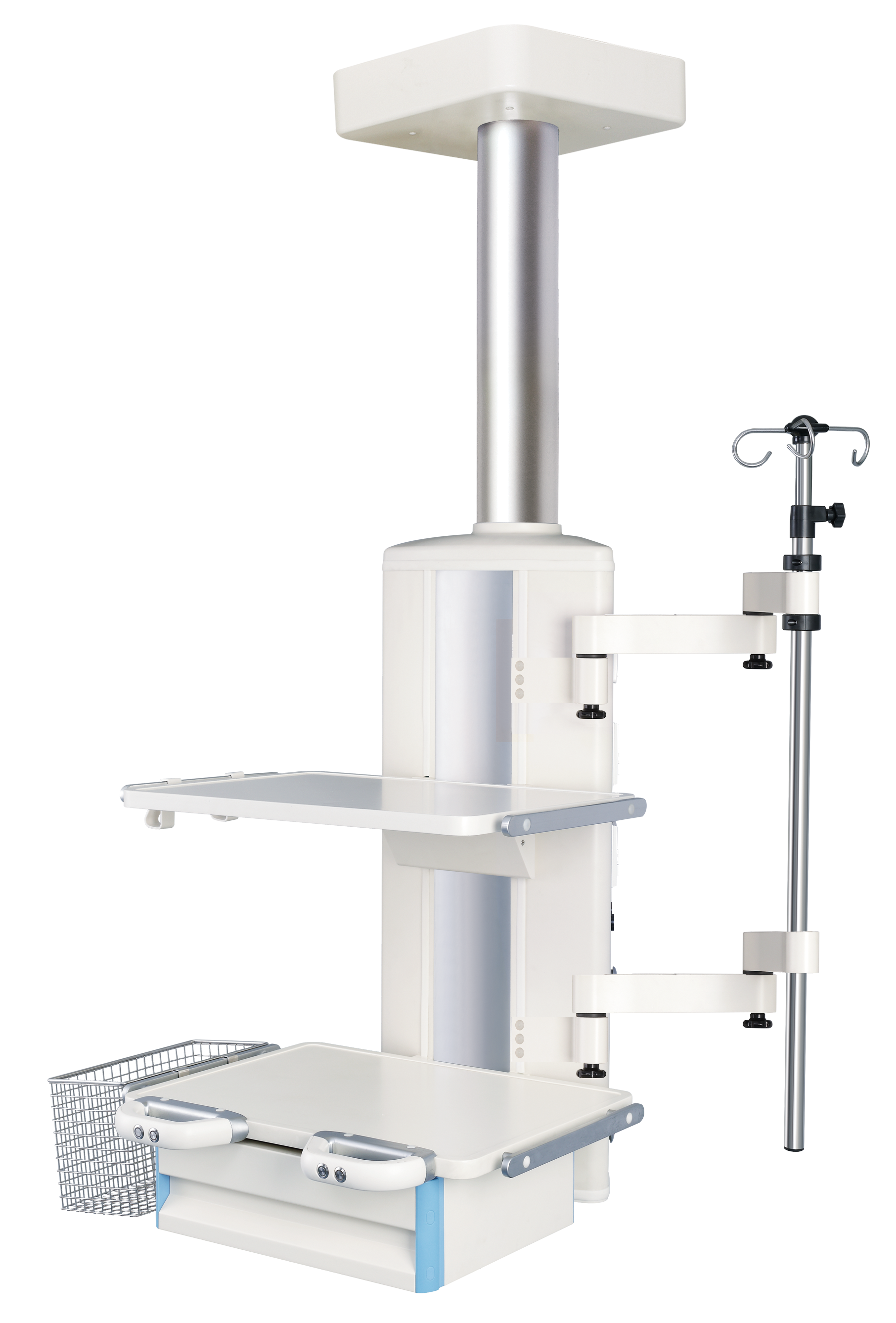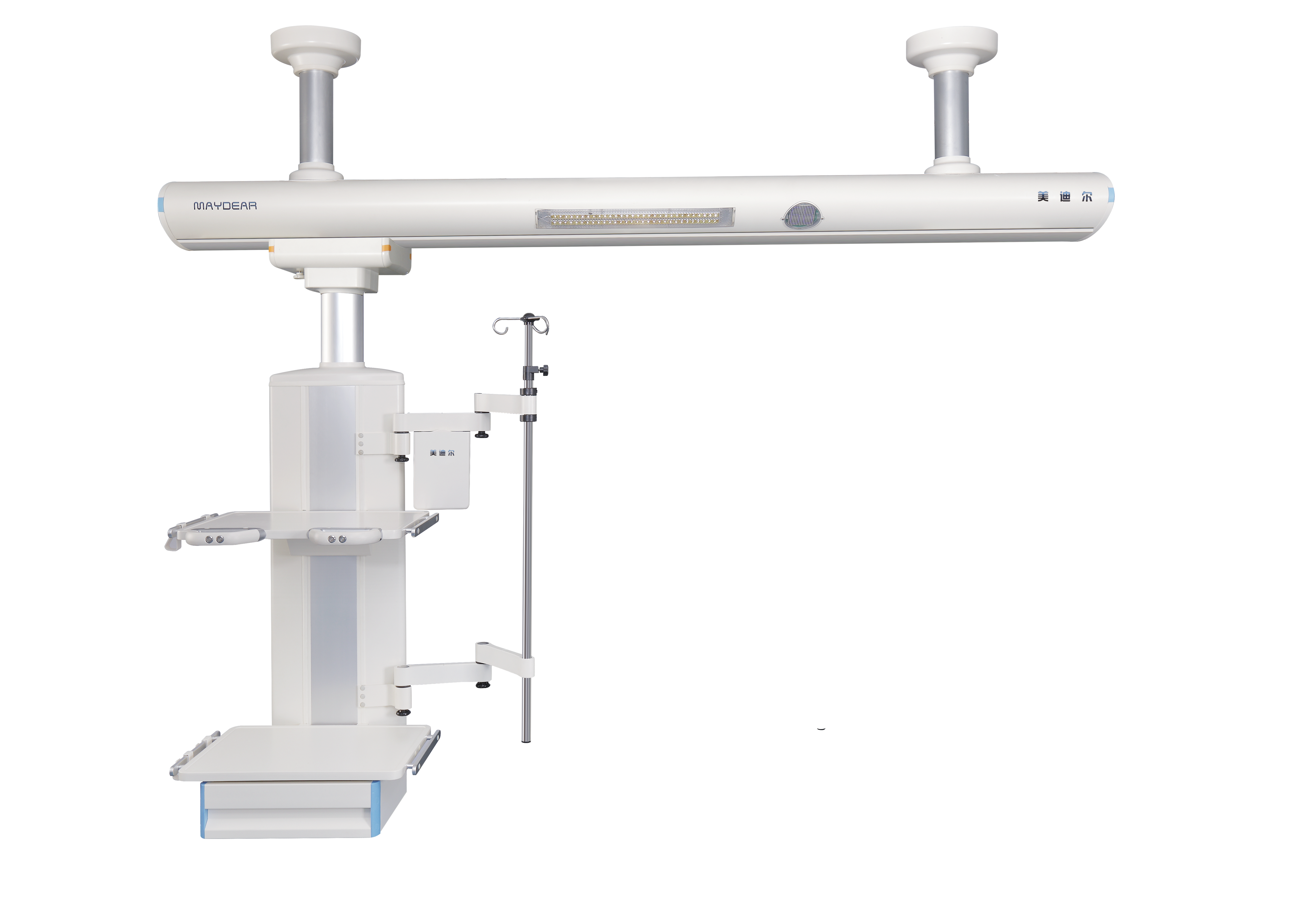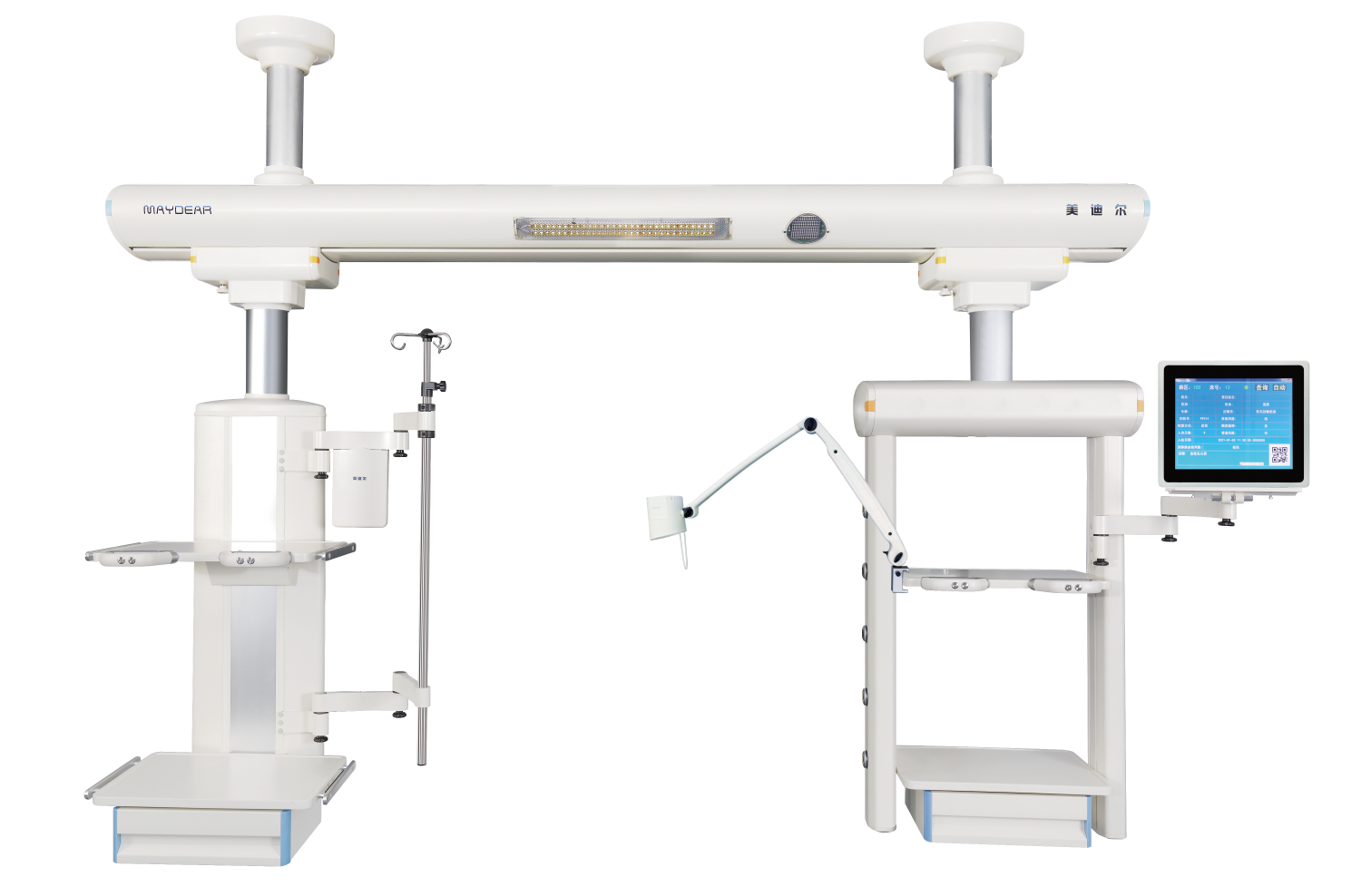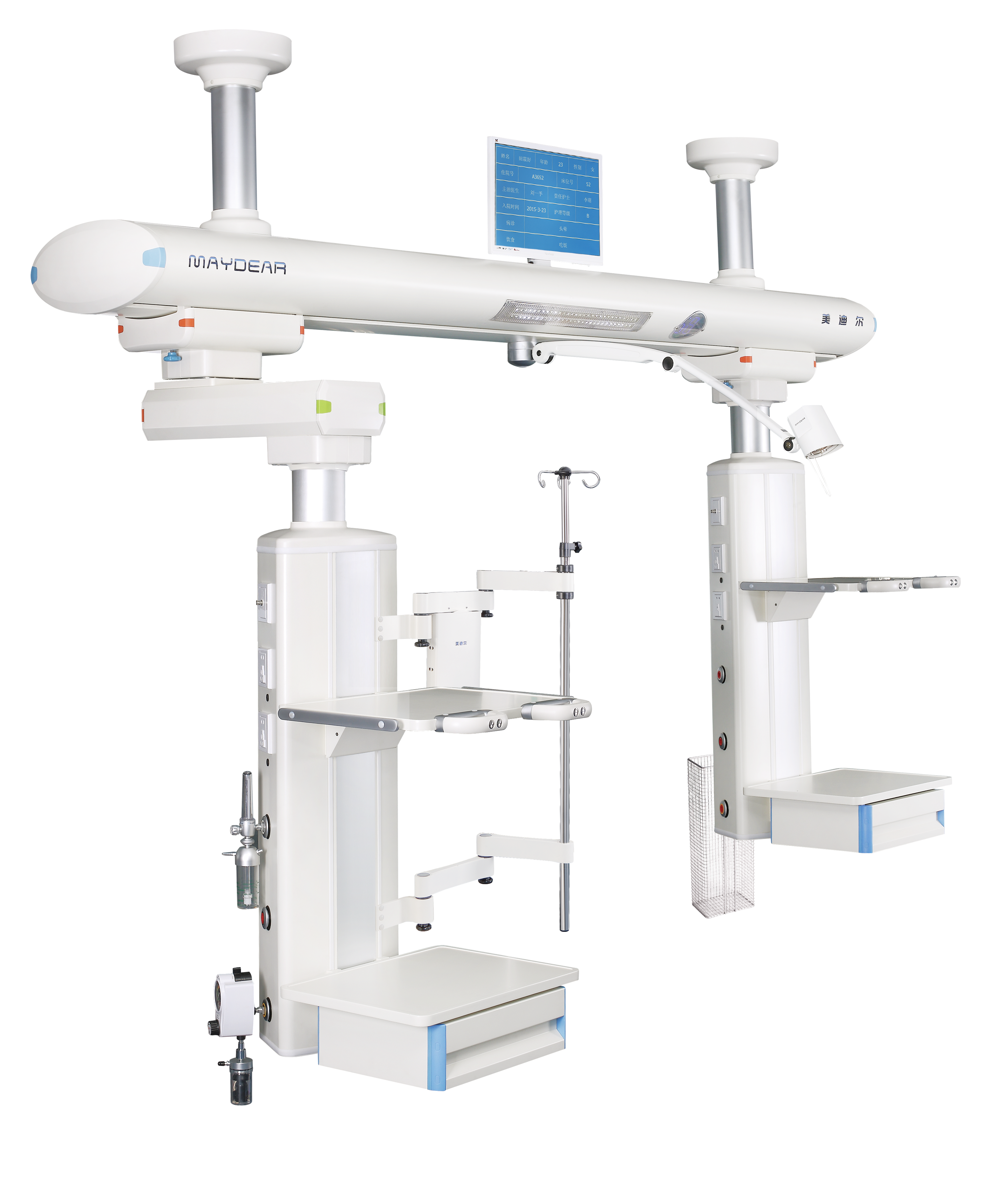 ICU 干濕分離旋臂吊橋 適用于醫(yī)院ICU病房,是現(xiàn)代重癥監(jiān)護病房必備的醫(yī)療搶救輔助設備,主要由橋架,干段和濕段組成。其特點在于合理的干濕分離結(jié)構,濕段配置升降靈活的輸液架和輸液泵架。干濕段配置有可升降調(diào)節(jié)的醫(yī)療監(jiān)護儀器平臺,在干濕段上分別將氧氣,空氣,吸引,強弱電,網(wǎng)絡輸入終端配置在醫(yī)護人員抬手可及的塔體上。濕段采用懸臂結(jié)構,提高了治療空間,移動旋轉(zhuǎn)部分采用氣控制動防飄移,桁架中央配置一款環(huán)保,節(jié)能的LED照明治療。為臨床治療提供了照明解決方案,另外還可根據(jù)您的要求選配通信傳呼,監(jiān)控,可視電話